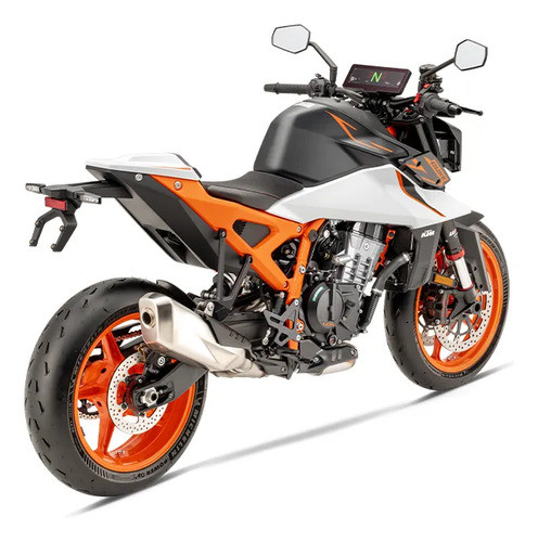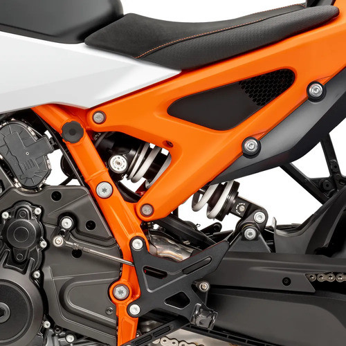 Más deportiva en su postura, más decidida en su propósito y mejorada hasta el extremo. La KTM 990 DUKE R aporta un plus de dinamismo al mercado de las Naked de peso medio con una lucha máxima que te llevará más lejos, más rápido. Homologada para llevar pasajero, se vende como monoplaza con piezas para el pasajero disponibles por separado, estableciendo un nuevo estándar con una potencia incrementada de 130 CV, y presumiendo de una ergonomía más afilada, junto con una suspensión WP APEX mejorada y una funcionalidad electrónica nunca vista. Diseñada, desarrollada y producida en Austria.